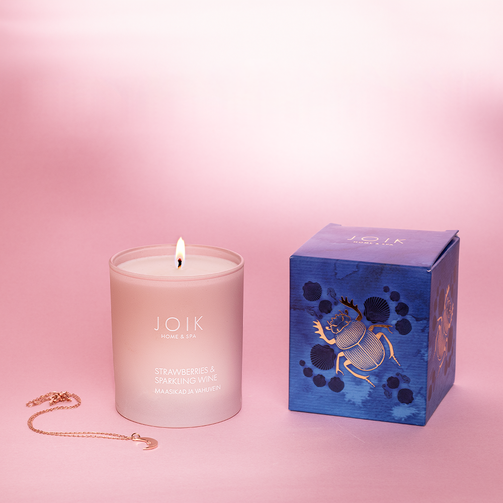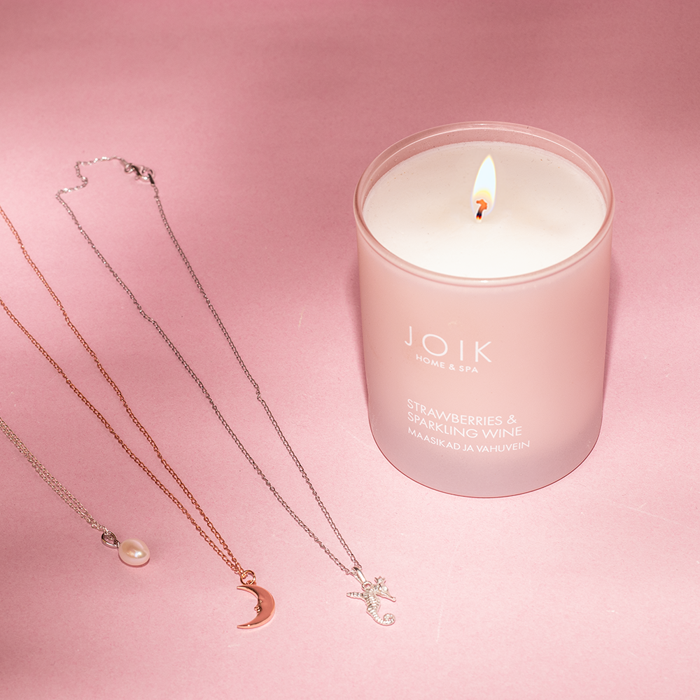 A necklace is hidden inside the romantic Strawberries & Sparkling Wine candle, whose intoxicating fragrance creates a luxurious and memorable atmosphere for celebrating holiday season.