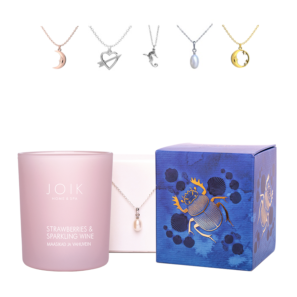 Genuine silver necklace with pendant from Tanel Veenre collection is hidden in a candle with a seasonal scent. Which necklace melts out will remain a surprise until the end!