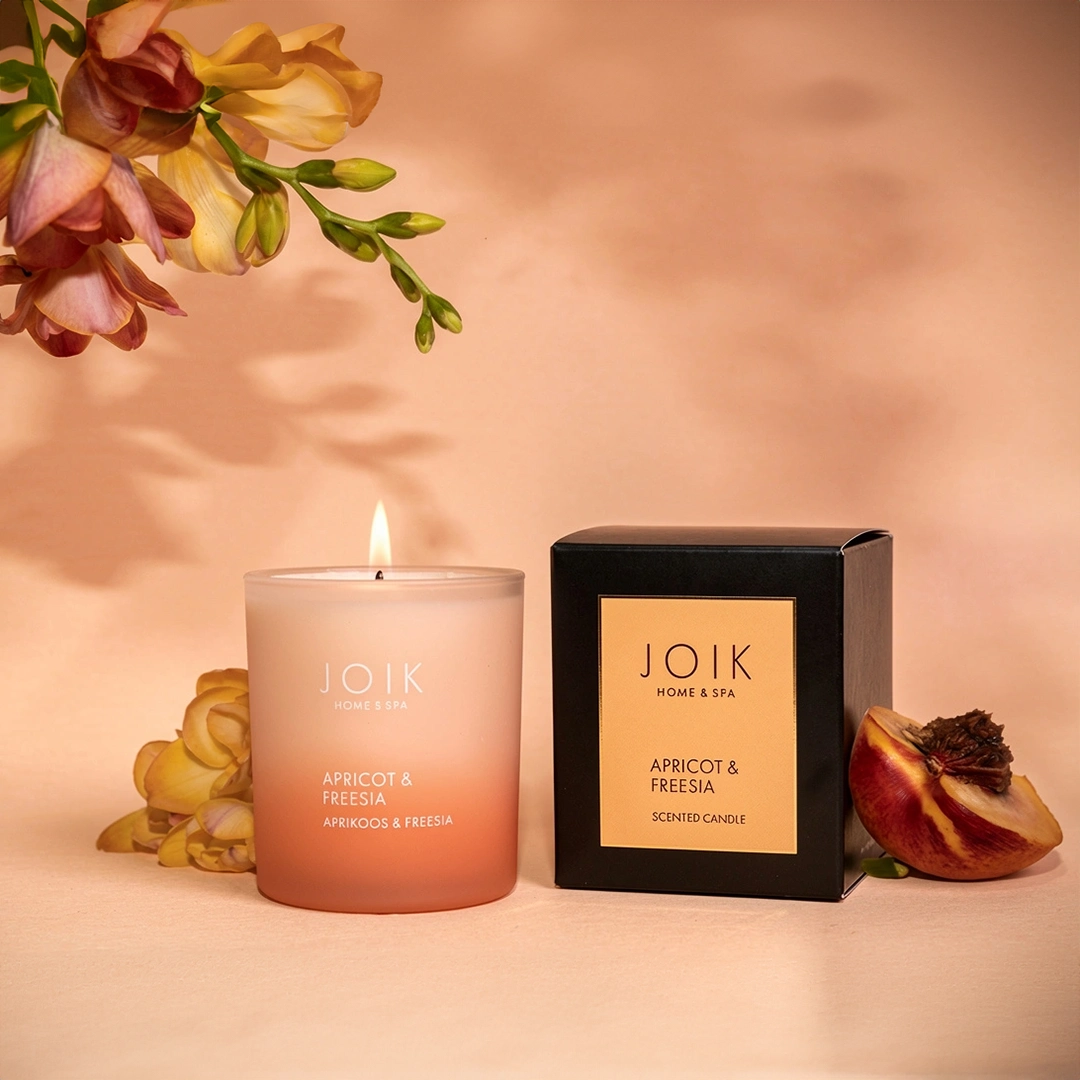 Scented candle Apricot and Freesia is a light and charming combination that brings the beginning of summer into the room. A mischievous summer fragrance cocktail with interwoven ripe apricot, juicy peach and delicate elegant freesia and in their rich layers hidden apple, blackcurrant and almond. This unique fragrance bouquet is truly summery, fruity and playful.