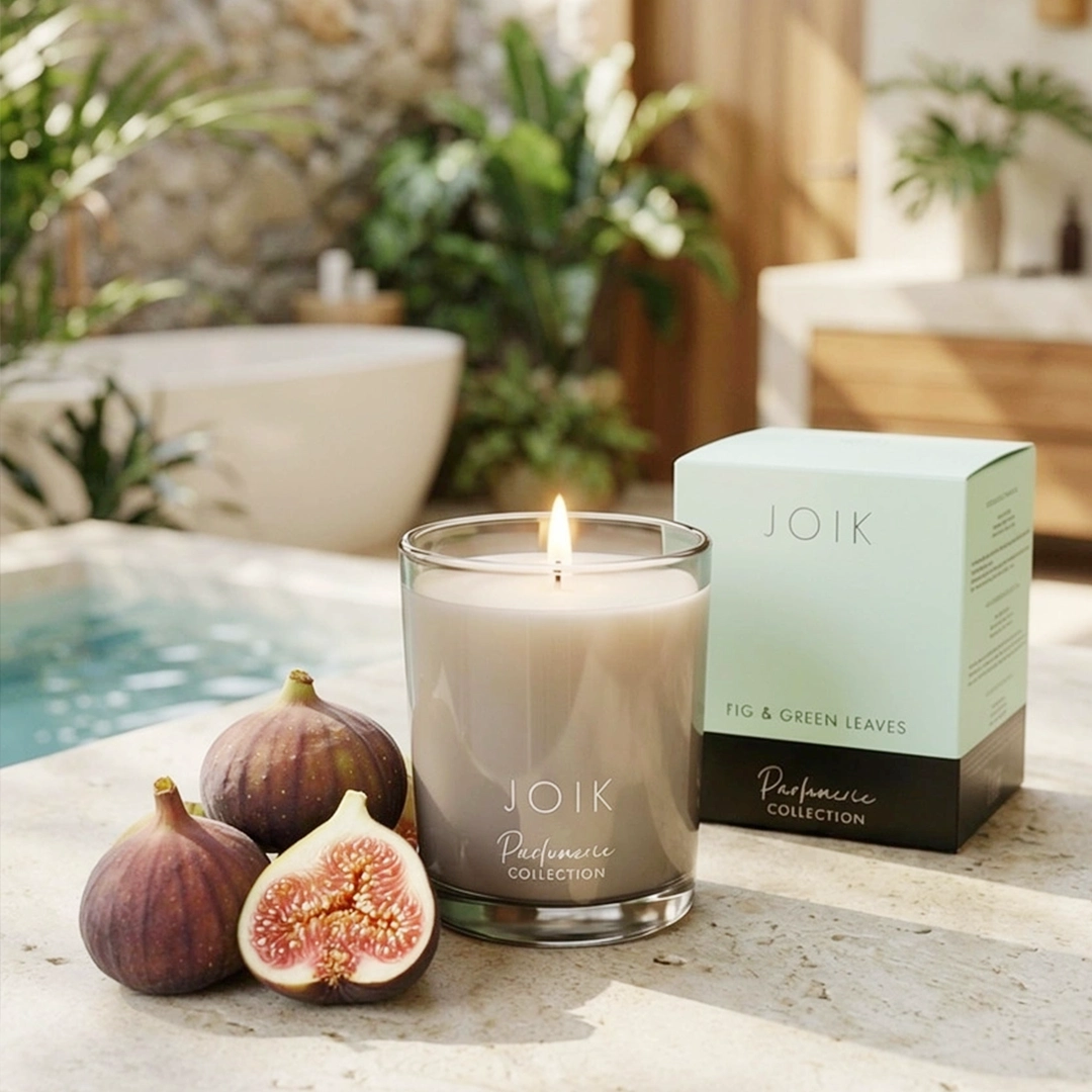 The Fig & Green Leaves scented candle was created to celebrate JOIK’s 20th anniversary and is part of the unique Parfumerie collection.