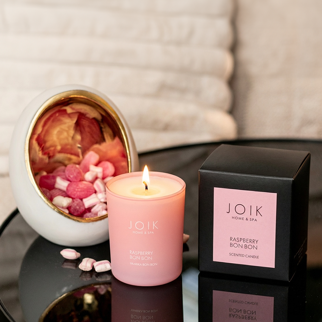Scented candle Raspberry Bon Bon in a beautiful gift box makes a perfect present for a loved one, a dear friend, or a cherished family member who appreciates luxurious fragrance experiences.
